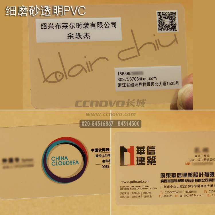 细磨砂透明PVC名片